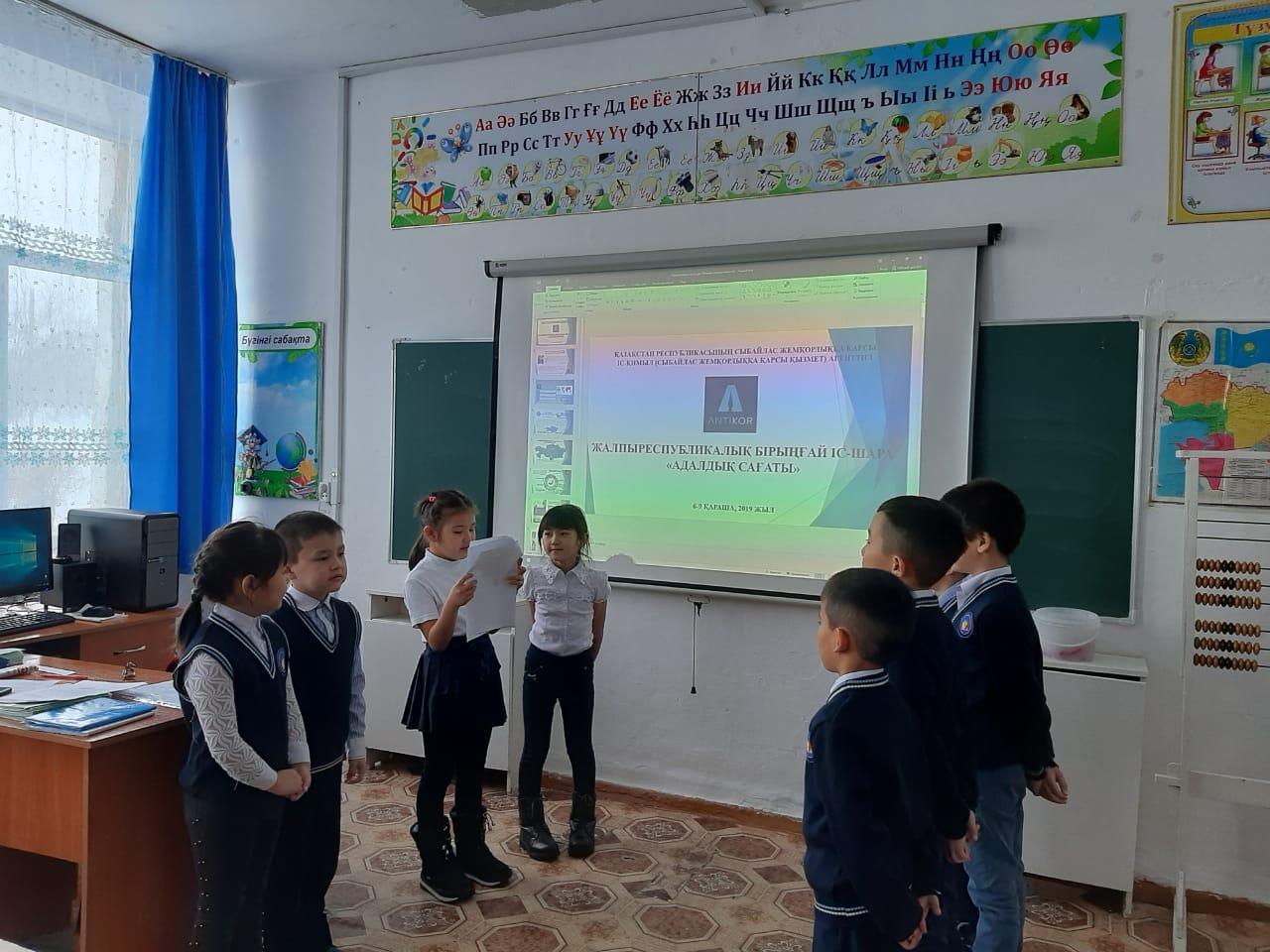 17 қантар күні сағат 10.20 -да "Бақыршық орта мектебі" КММ-нің ұжымы республикалық акцияға қатысып барлық сыныптарында "Адалдық сағат" тәрбие сағаттар өткізілді. Акцияның мақсаты: қоғамда, әсіресе өскелең жастар арасында "парасаттылық принциптерін ілгерілету", "парасаттылық, әділдік, шынайлық" ұғымдарын трендке айналдыра отырып, сыбайлас жемқорлыққа қарсы мәдениетті қалыптастыру.