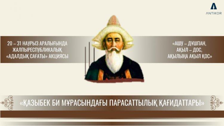 22 март 2021 0 1 2 3 4 5 "ҚАЗЫБЕК БИ мұрасындағы парасаттылық қағидаттары" тақырыбындағы "Адалдық сағаты "
