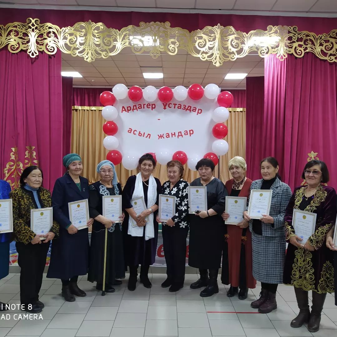 Мектебімізде талай жылдар бойы ұстаздық қызмет атқарған, бейнетінің зейнетін көріп отырған ардагер ұстаздарға арналған "Ардагер ұстаздар - асыл жандар" тақырыбында арнайы концерттік бағдарлама ұйымдастырылды. Мектеп директоры м.а. Сауле Бекбердиновна ардагер ұстаздарға оқу - ағарту министірінің алғыс хаттарын салтанатты түрде табыстады, мектеп оқушылары өз кезегінде әсем ән мен әуезді күйлерін қонақтарға арнады. Концерттен кейін ардагерлерге арнап
