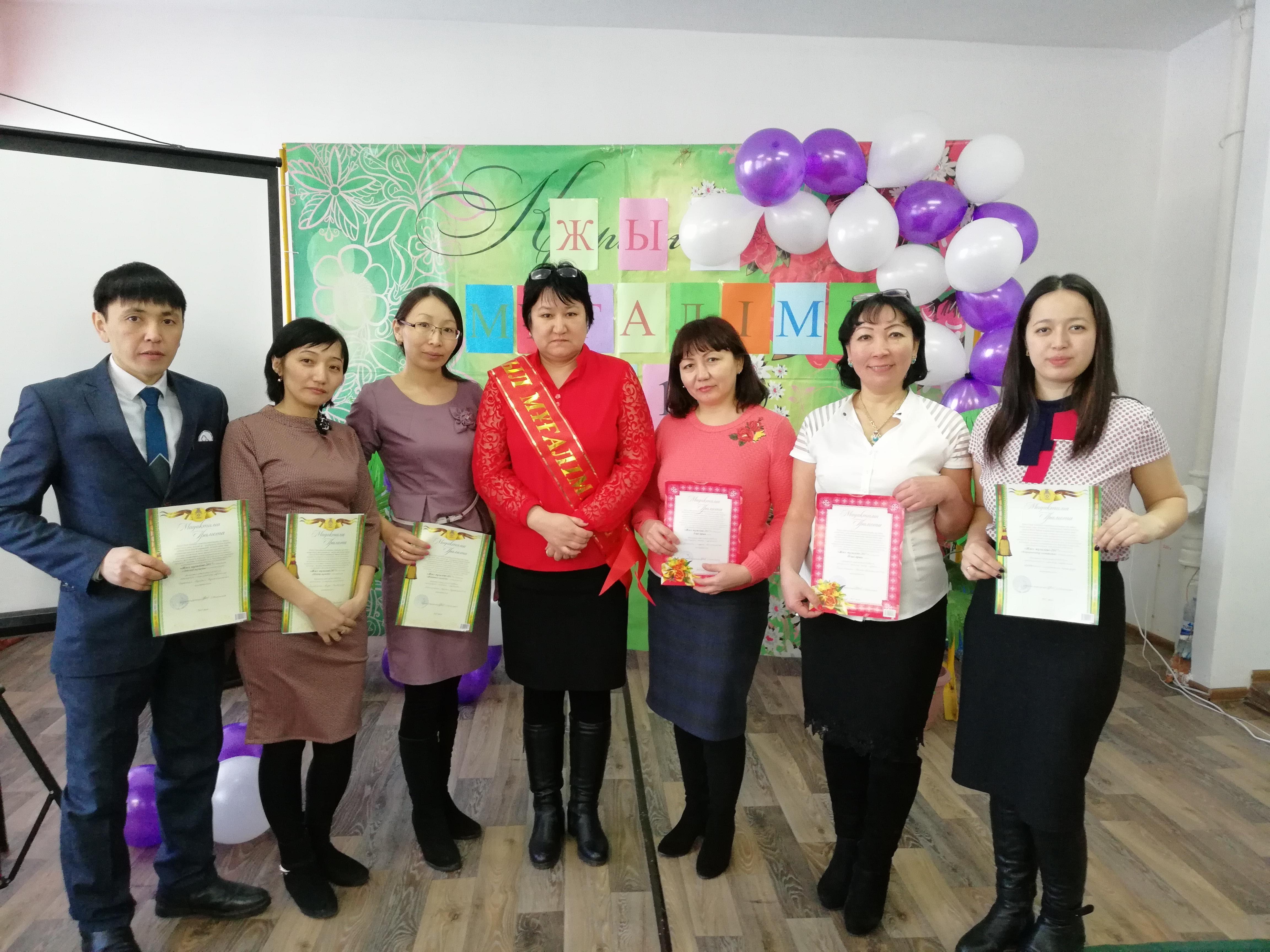 "Рухани жаңғыру" бағдарламасы аясында мектебімізде мектепішілік "Жыл мұғалімі-2017" байқауы өтті. Байқау өте мазмұнды да қызықты өтті. Байқау барысында мұғалімдер шығармашылық жағынан жан-жақты сынға түсіп, жаңа идеяларымен де бөлісті. Сонымен қатар өнер сайысында да қызықты номерлерге толы болды. Қорытындысында "Жыл мұғалімі" атағына бастауыш сынып мұғалімі Ақжол Базыловна ие болды. Жүлделі І орынға бастауыш сынып мұғалімі Лаура Калижаровна және ІІ орын өзін-өзі тану пәнінің мұғалімі Жанна Калидоллаевна , ІІІ орынды тарих пәнінің мұғалімі Шынар Мұхтархановна иеленді. Құттықтаймыз!!!