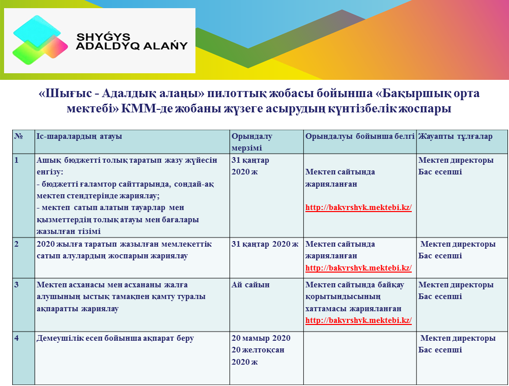 "Бақыршық орта мектебі" КММ