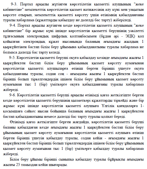 12 апрель 2023 0 1 2 3 4 5 «Бастауыш, негізі орта, жалпы орта білім беру ұйымдары арасында балаларды ауыстыру үшін құжаттарды қабылдау» стандарты