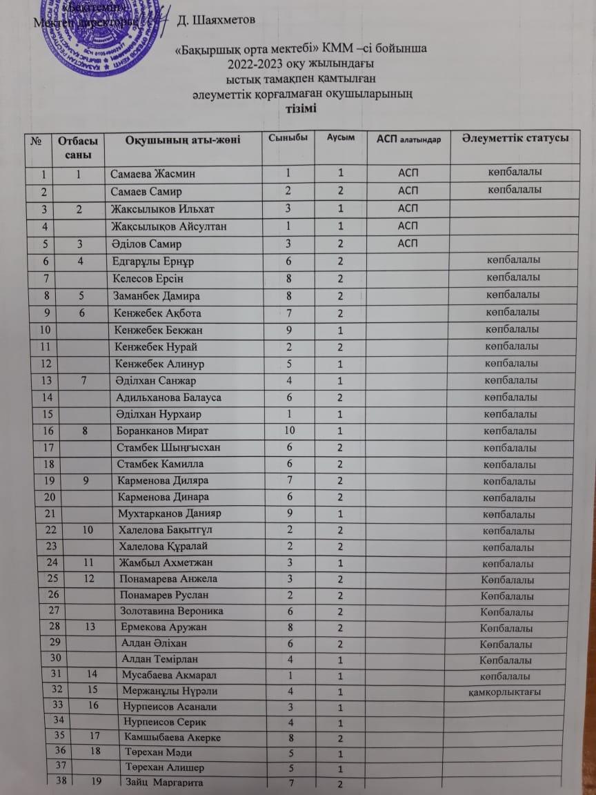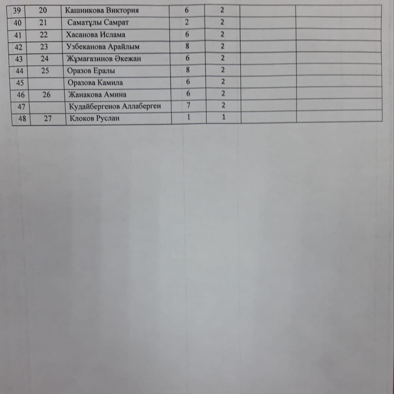 Оқушылардың тізімі