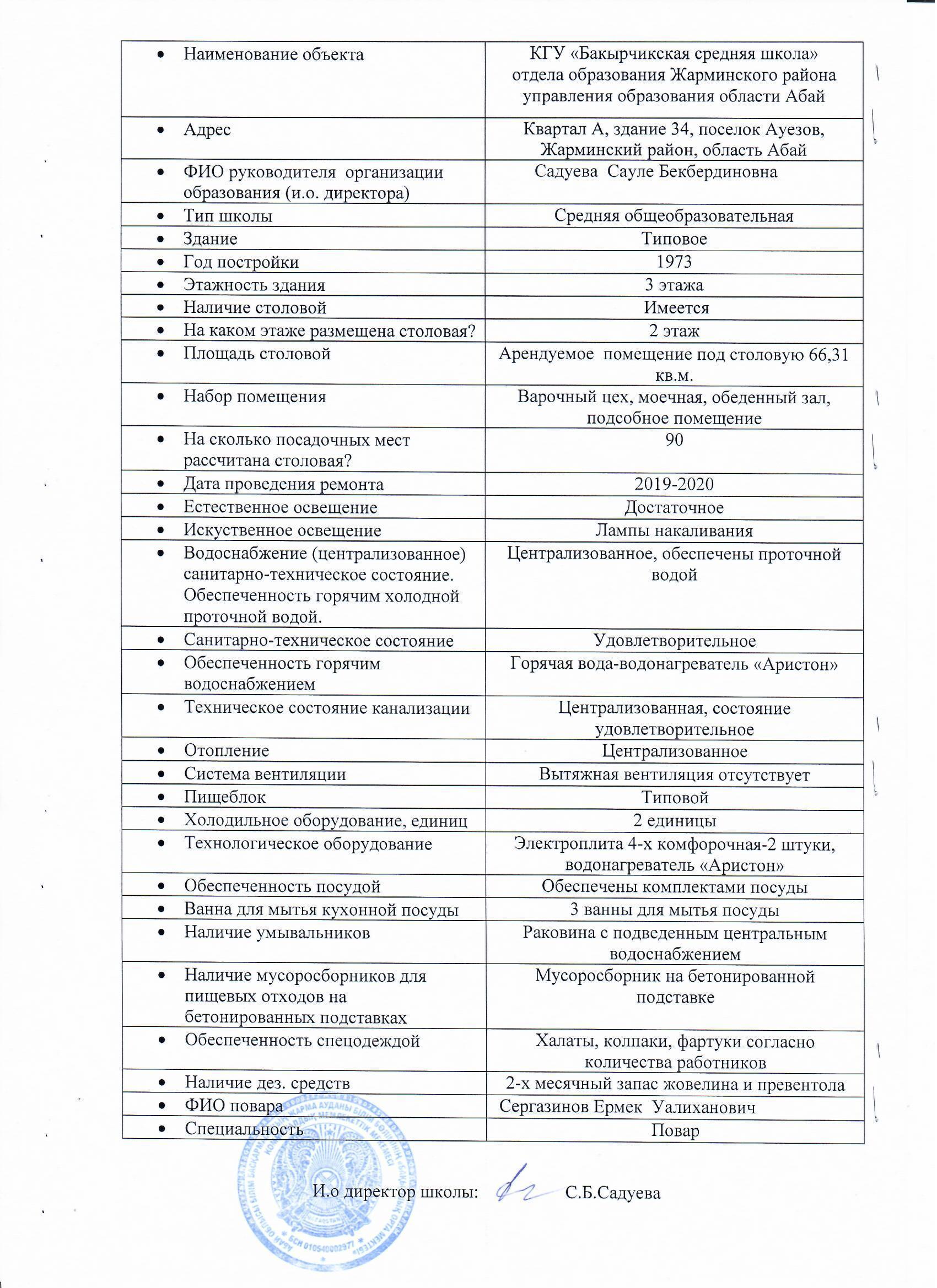 Мектеп асханасының паспорты