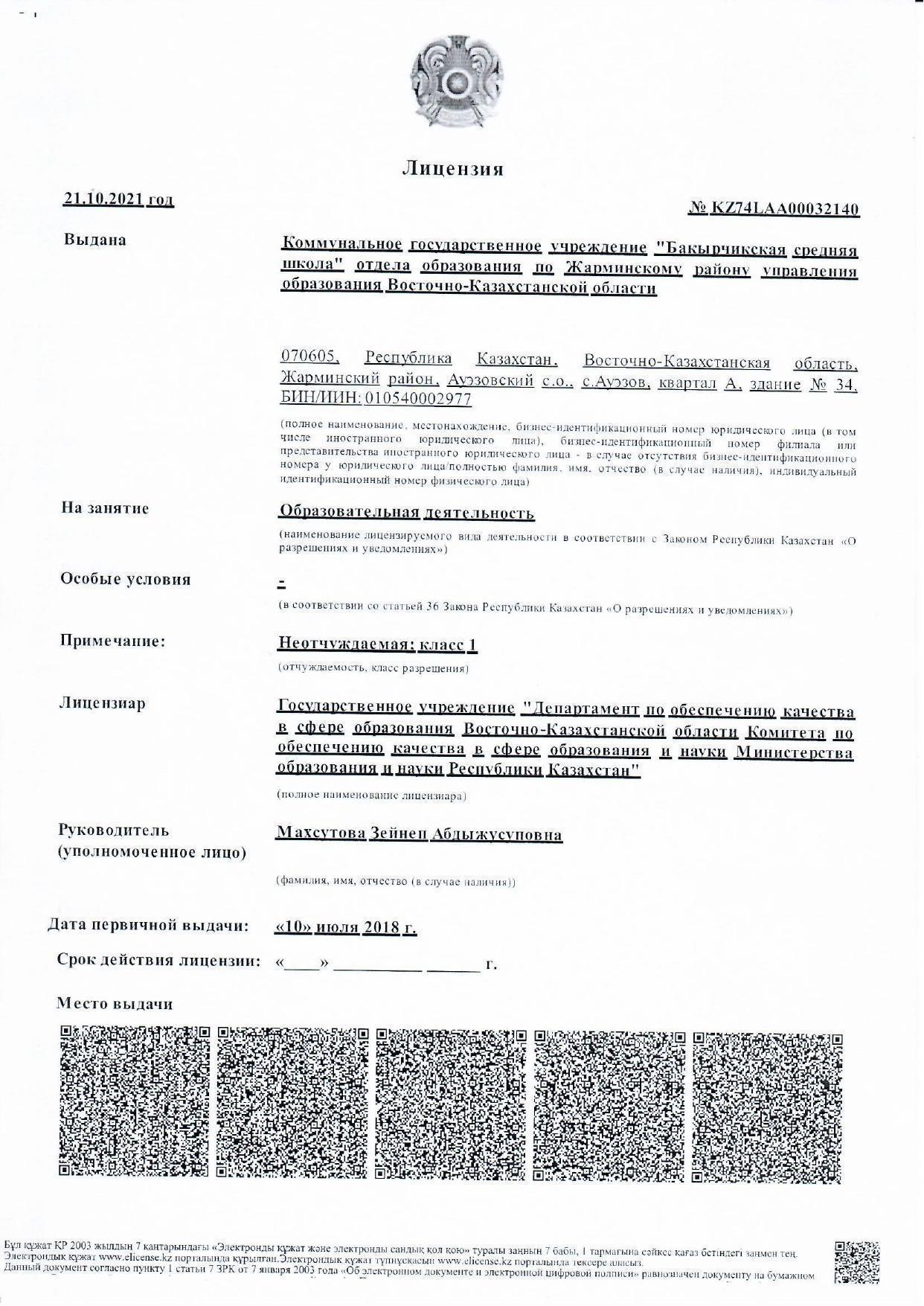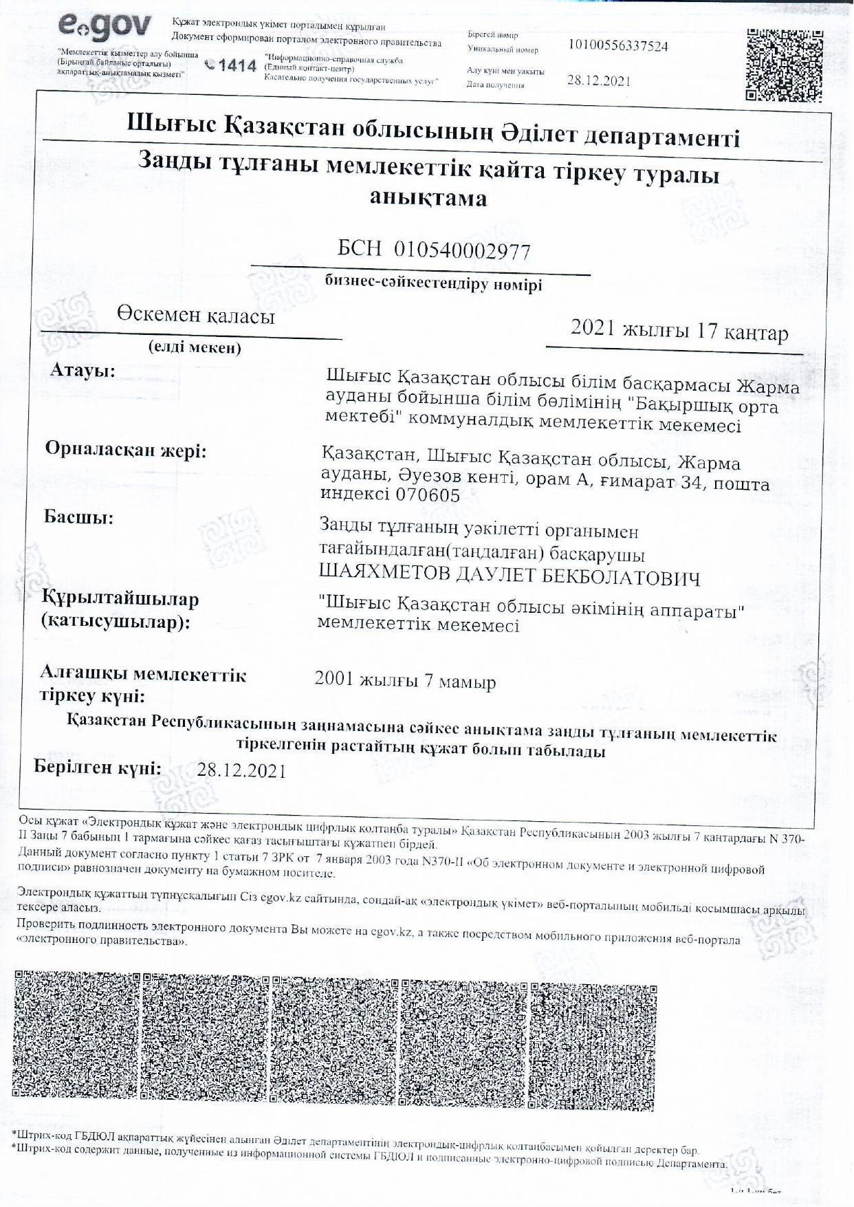 "Бақыршық орта мектебі" КММ