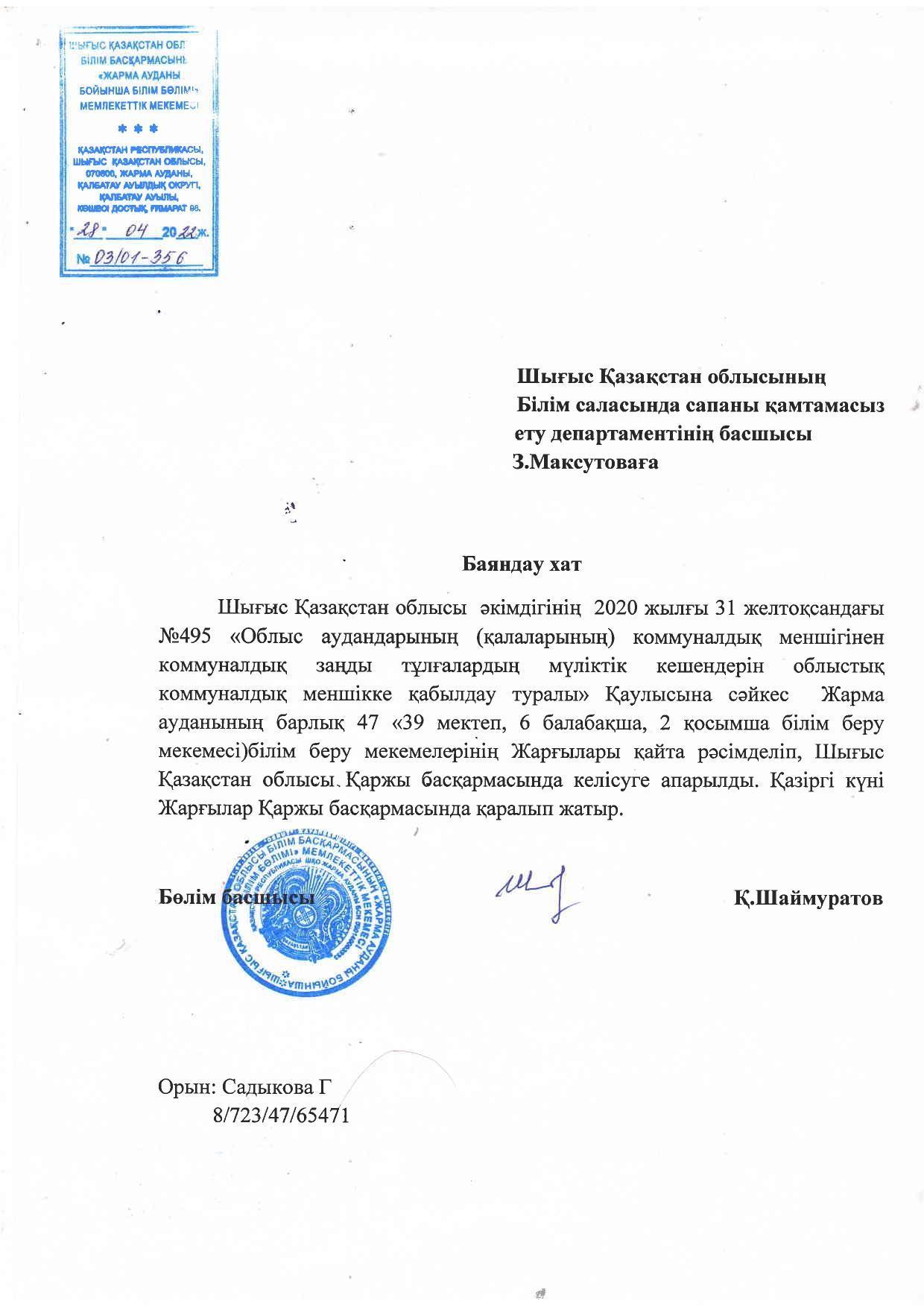 Жарма ауданы білім бөлімінің
