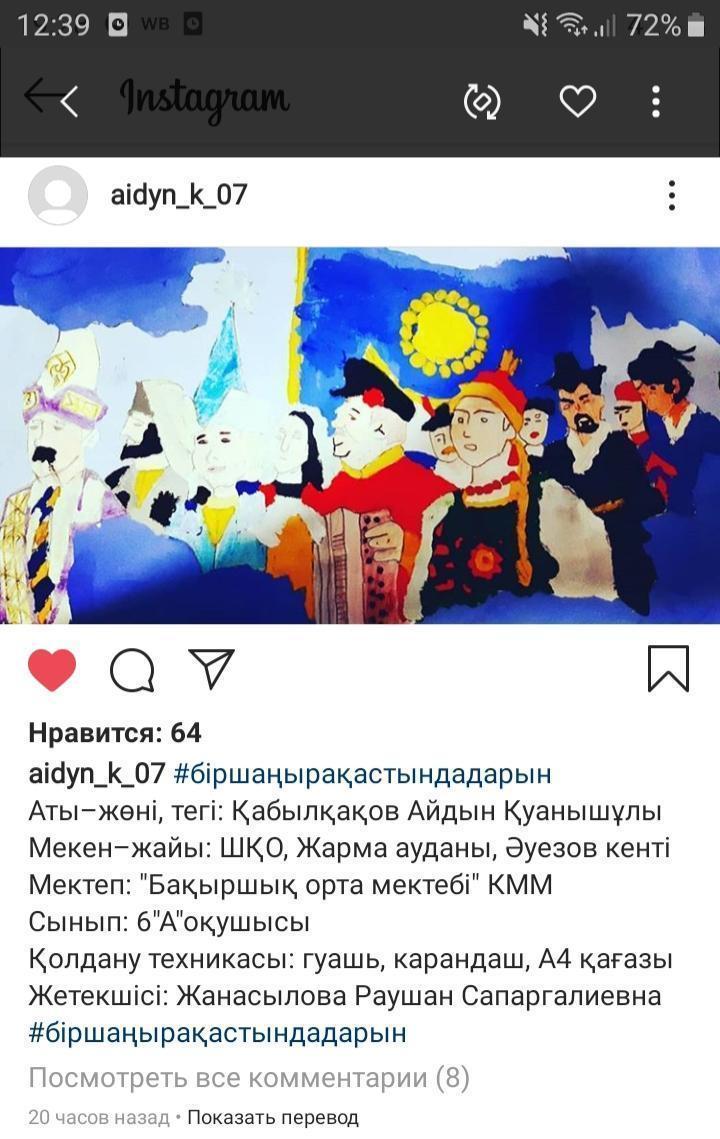 "Бақыршық орта мектебі" КММ » Іс-шаралар » Участие детей в Областном дистанционном конкурсе рисунков "Казахстан - наш общий дом", посвящённом Дню единства народов Казахстана